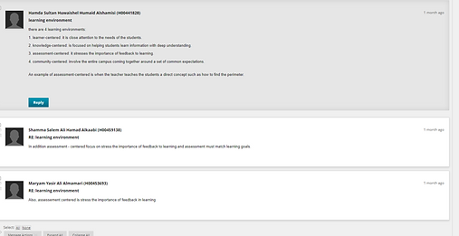 - خذي لقطات (screenshots)من منشورات المشاركة الخاصة بك في صفحة المناقشة لتضمينها في المحفظة الإلكترونية (eportfolio).